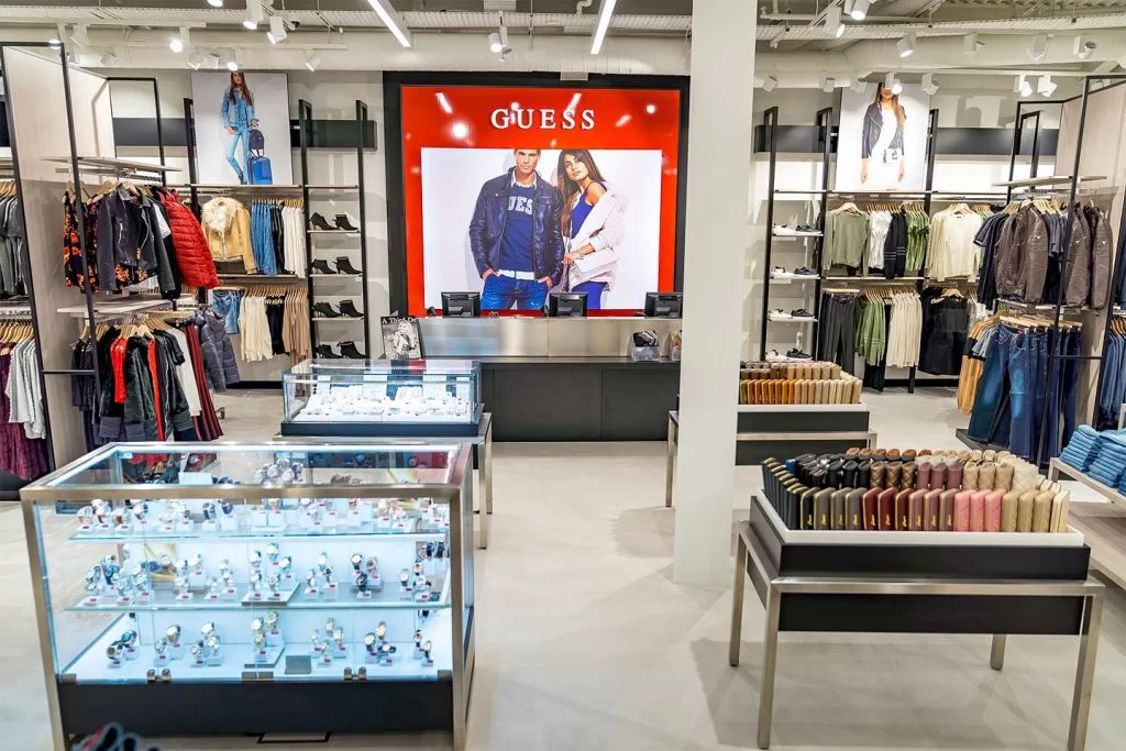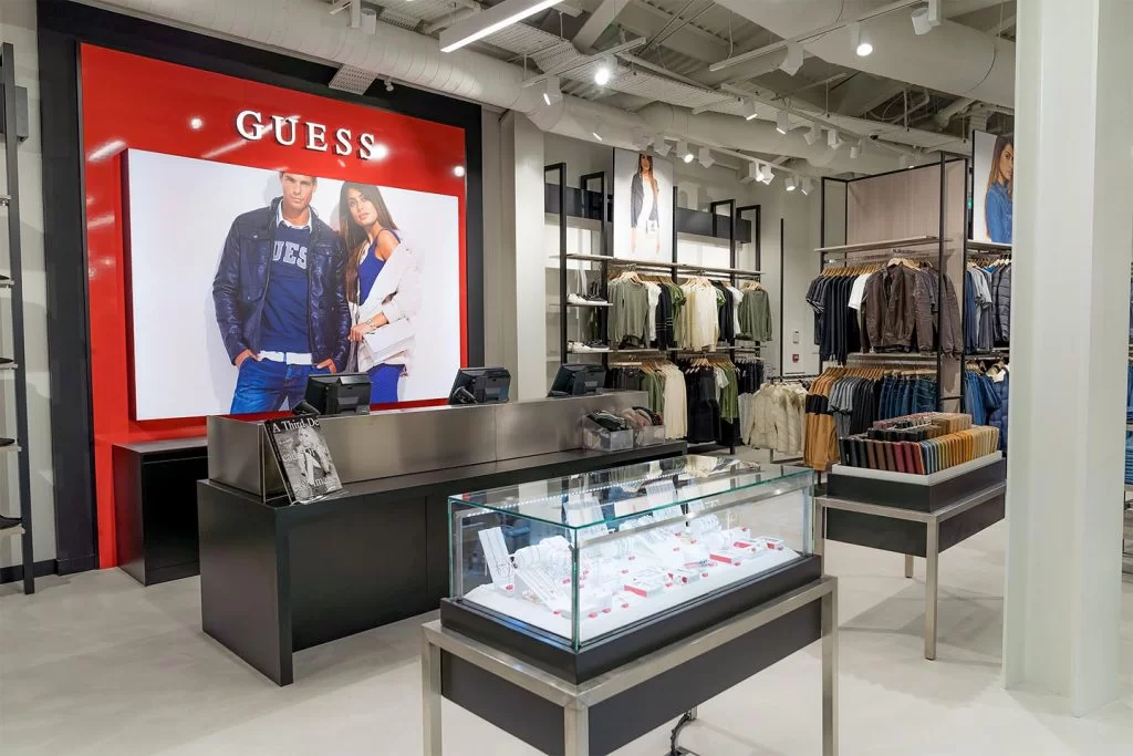 Guess shop in London, created for the new Millennium Dome Icon Outlet – The O2 Arena.
